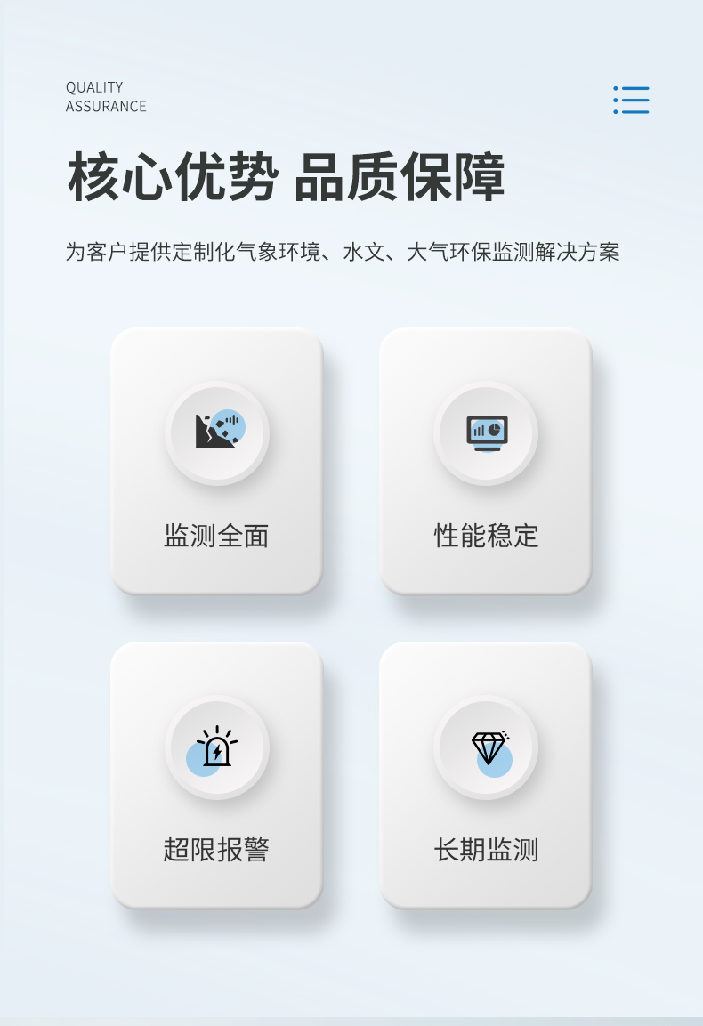 山東萬象環(huán)境科技有限公司主營防爆氣象站,便攜式氣象站,水文監(jiān)測站,GNSS位移監(jiān)測站,校園氣象站,農(nóng)業(yè)氣象站,農(nóng)業(yè)四情監(jiān)測系統(tǒng),負(fù)氧離子監(jiān)測站,超聲波氣象站,咨詢熱線:13276361891提供一站式環(huán)境監(jiān)測解決方案,專業(yè)的氣象監(jiān)測站設(shè)備廠家,可根據(jù)用戶需求定制氣象參數(shù),歡迎來廠參觀!...