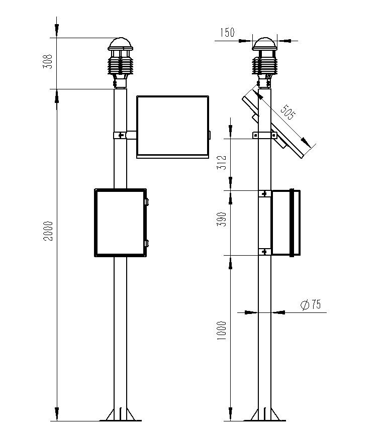 5.兩米碳鋼支架,頂部無需法蘭盤可直接套接傳感器