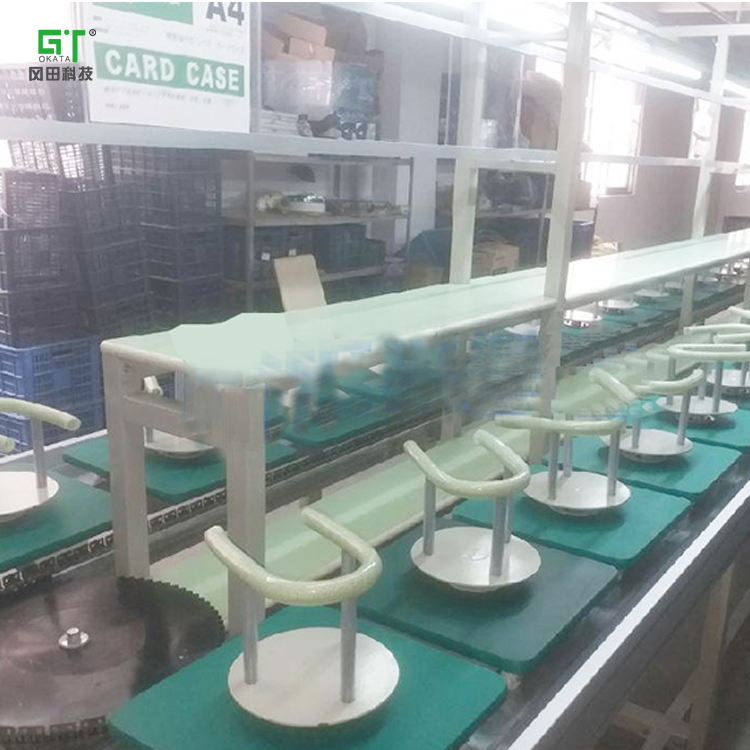 該類生產(chǎn)裝配線采用PVC防靜電尼龍片基帶作為傳送介質(zhì),以鋁合金型材為護(hù)邊,適用于汽車零部件