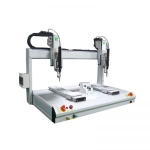 該設(shè)備屬于在線式單頭自動鎖螺絲機(jī),可適用于鎖付尺寸范圍600mm*300mm的產(chǎn)品,可通過工控設(shè)備內(nèi)的電腦程序控制鎖付位置,完成全自動鎖付工藝。