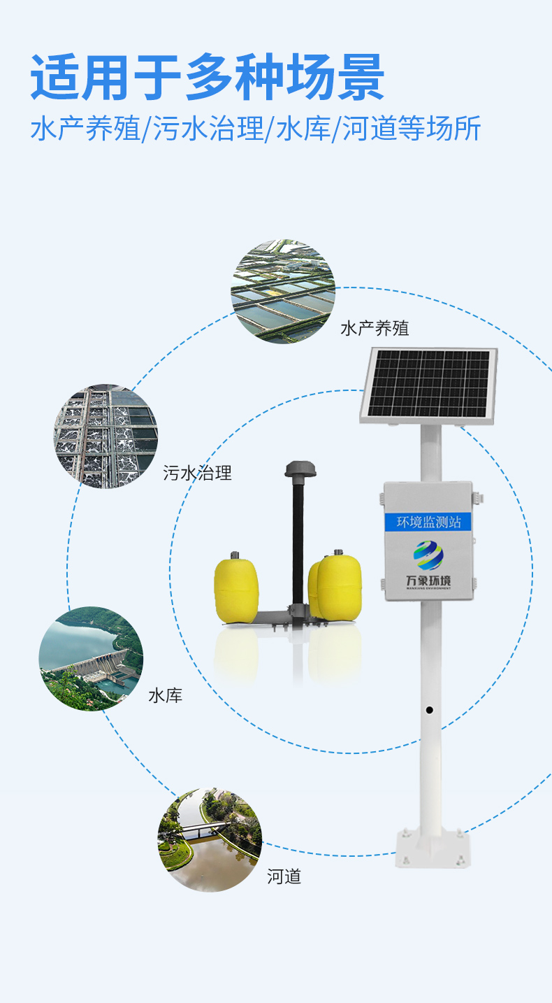 目前山東萬象環(huán)境科技有限公司研發(fā)生產(chǎn)的WX-LSZ06型水質(zhì)監(jiān)測站廣泛應(yīng)用于水產(chǎn)養(yǎng)殖、污水治理、水庫、河道等場所
