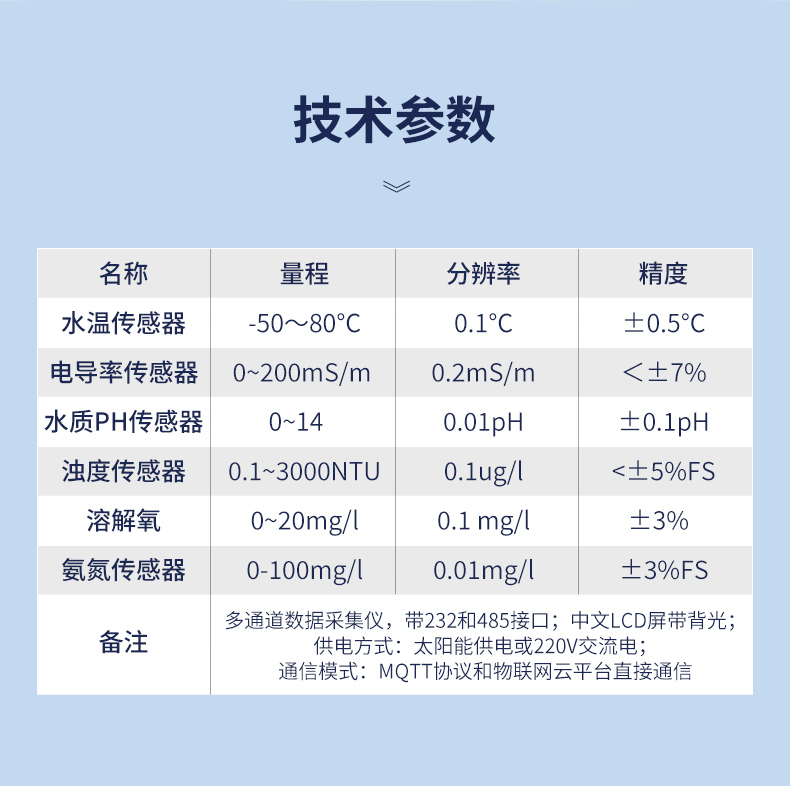備注: | 多通道數(shù)據(jù)采集儀,帶232和485接口;中文LCD屏帶背光;供電方式:太陽能供電或220V交流電;通信模式:MQTT協(xié)議和物聯(lián)網(wǎng)云平臺直接通信; | ||